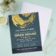 YOGA Massage Therapy Studio / Beauty Salon Open House Flyer Template - elegant Blau und Imitate Gold Foil Pinselstriche ZEN Symbol. Ideal für YOGA Meditation Instructor / Massage Therapy / Makeup Beauty Salon / Friseur / Friseur, Stylist, Kosmetologe, Beautician und Creative Professionals. Einfach mit Ihrem eigenen Text und Bildern anpassen - machen Sie es zu Ihrem eigenen.