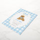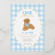 Feiern Sie Ihren ersten Geburtstag mit dieser bezaubernden "One Golden Year"-Einladung mit einem bezaubernden Golden Retriever Welpen mit einem blauen Gingham-Bogen. Der Hintergrund zeigt einen süß-hellblauen Gingham-Schachbrett mit einem geschmolzenen Rahmen, der perfekt für die erste Geburtstagsfeier eines Jungen geeignet ist. Vollständig anpassbar mit dem Namen, den Party-Details und den UAWG Ihres Kindes.