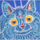 Sicker mit Louis Wains Tiergemälde A Cat in Gothic Style (1860-1939). Eine psychedelisch blaue Katze sieht freundlich mit gelben Augen auf den Betrachter aus. Ein wunderbares Geschenk für Katzenliebhaber und englische Kunst.