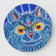 Uhr mit Louis Wains Tiermalerei A Cat in Gothic Style (1860-1939). Eine psychedelisch blaue Katze sieht freundlich mit gelben Augen auf den Betrachter aus. Ein wunderbares Geschenk für Katzenliebhaber und englische Kunst.