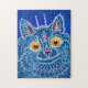 Puzzle mit Louis Wains Tiergemälde A Cat in Gotik (1860-1939). Eine psychedelisch blaue Katze sieht freundlich mit gelben Augen auf den Betrachter aus. Ein wunderbares Geschenk für Katzenliebhaber und englische Kunst.