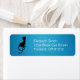 Stilvolles lila Katzenlabel mit einer schönen Abbildung einer grausamen bösen schwarzen Katze mit leuchtenden Augen auf einem flauschigen, lebendigen, blauen Hintergrund.