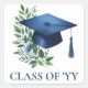 Blue Grad Cap und Green Foliage Graduate Envelope Quadratischer Aufkleber