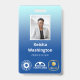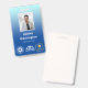 Vertikales Abzeichen von Büroangestellten mit einfachem Design und einem Farbverlauf von blass bis himmelblau. Fügen Sie ein Foto des Mitarbeiters zusammen mit Namen und Beruf hinzu. Personalisieren Sie weitere mit drei Unternehmenslogos.