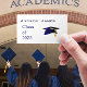 Blue graduation cap 2023 - name card telefonnummerkarte