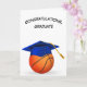 Blaue Graduierungskappe auf einen Basketball auf weißem Hintergrund. Die Hintergrundfarbe kann geändert werden. Text ist bearbeitbar.