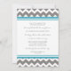 Individuelle Probe Abendessen Party Einladungen in modernen und eleganten aquamarinen blau, grau und weiß lustigen Zickzack Zickzackmuster Muster. Personalisieren Sie den Text, um eine einzigartige Einladung für Ihre Hochzeit Probe Abendessen. Kontaktieren Sie uns, um eine Farbänderung anzufordern. Erhältlich in vielen passenden Hochzeitsartikeln.