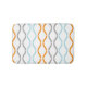 Enhance the aesthetic of your bathroom with this sophisticated bath mat design. The elegant combination of modern pastel tones, including shades of blue, orange, and gray, creates a stylish and contemporary look. The geometric seamless pattern on a crisp white background adds a touch of refinement to your space. Elevate your bathroom decor with this chic and trendy bath mat.
