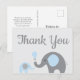 Blue Gray Elephant Baby Dusche Danke Postcard Postkarte