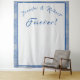 Das Design ist elegant in blau-grauem Marmor gehalten und bildet einen rechteckigen Hintergrund. Die Namen von Braut und Bräutigam werden als Bogen über dem anpassbaren Wort "Forever!" dargestellt. Entworfen, um sich mit der Mit Monogramm Hochzeitssuite Blue & Gray Marble abzustimmen.