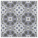 Schönes zeitgenössisches, blaues violettes, lila und graues Bohemisches Batik-Mosaikbild. Verziertes, elegantes und trendiges Hipster-Design für den extravaganten Innenarchitekten, künstlerische Modediva, beliebter angesagter Trendsetter, Vintages Retro, Jugendstil-Deko-Kunststil oder abstrakter grafischer geometrischer Motiv-Liebhaber.