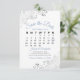 Diese Save the Date-Karte zeichnet sich durch ein wunderschönes Design aus, mit hellblauen und grauen Schriftzeichen auf weißem Hintergrund, und krümelige Imitate belichten silbergraue Falten in den Ecken. Es gibt einen individuell anpassbaren Kalender, in dem Sie ein Herz um Ihren Hochzeitstag legen können. Es gibt Platz für den Namen des Paares, den Ort der Hochzeit und die Website. Elegante und schicke Art, Ihre Freunde und Familie lassen wissen, um für Ihren besonderen Tag Save the Date.