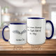 Weite offene blaugraue Flügel Illustration. Grunge blauer Hintergrund. Benutzerdefinierter Text auf beiden Seiten.