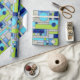 Dieses Geschenkpapier hat ein quadratisches Deko-Muster in digitalem Farbglas. Farbenfrohe geometrische Gestaltung in den Farben Blau, Aquamarine und Grün. Ein schönes Verpackungspapier, um Ihre Geschenke zu bedecken. Sie können das Muster auf diesem Verpackungspapier größer oder kleiner machen.