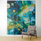 Blue Green Gold Alcohol Ink Cosmos Wandteppich