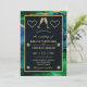 Blue & Green & Gold Glitzer Peacock Agate Wedding Einladung
