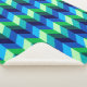 Eine große Sherpa-Decke mit farbenfrohen, ombre-Muster von Chevrons in Kalkgrün, königlich türkis, Ozeanblau und Himmelblau.