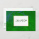 Eine bearbeitbare RSVP-Kartenvorlage für Winterurlaub mit einem eleganten Muster aus Pinienbäumen und Pinecones in grün und blau auf grünem Hintergrund. Passen Sie es an, um Schriftart oder Farben, Größen und sogar Ihr Design für später retten.