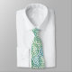 Diese Krawatte hat ein Boho Design überlappender Spiralen in blau und grün auf einem Feld von Weiß.