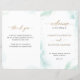 Dieses elegante Programm für die Hochzeitsfeier zeichnet sich durch wunderschöne weiche Aquarellfarben in Blau und Grün und goldenen Fesseln aus. Verwendung handgeschriebener Typografiedetails in Gold. Personalisieren Sie die Formulierung in allen Seiten. HINWEIS: Diese Programme kommen flach an und müssen zur Montage in der Mitte heruntergeklappt werden. Das Standardwertpapier wird empfohlen. Teil unserer Kollektion "Airy Blue and Green Watercolor".