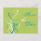 Blue Green White Floral Save the Date Post Card Ankündigungspostkarte