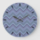 Blue-Grey Zigzag Stripes Große Wanduhr