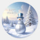 Beautiful Blue Hat Snowman Christmas Tree Holiday Sticker