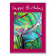 Tropischer Geburtstag mit original Aquarellmalerei von tropischen "Blue Hawaii" Blätter, tropische Palmen Pflanze. Diese originelle, farbenfrohe Kunst ist in den Farben Grün, Blau, lila und Bordeaux gehalten. Leaf und Blattwerk.