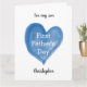 Eine personalisierte Tageskarte für den Vater, die ein blaues Herz in Aquarellfarbe aufweist, welches "Erster Tag des Vaters" heißt. Die Insider-Kartennachricht liest eine süße Stimmung, die leicht editiert werden kann. Auf der Rückseite dieser personalisierten 1. Vatertagskarte befindet sich das gleiche Herz und das Jahr, das Sie leicht bearbeiten können.
