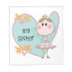 Eine kleine Prinzessin in Tiara auf einem großen, blauen Hintergrund mit Text, der auf großen Schwestermagneten, Magneten, Karten, Aufklebern, Taschen, Schlüsselketten, Kissen, Wanduhren und vielem mehr "Big Sister" steht!