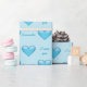 Desteis blaue Abbildung der Herzform auf einer hellblauen Hintergrundfarbe. Es gibt auch Text, der lautet: "I Liebe you" zusammen mit einem personalisierbaren Textbereich für einen Namen. Ideal für den Valentinstag, um ein Geschenk für diesen besonderen Menschen in Ihrem Leben zu verpacken, zum Beispiel.