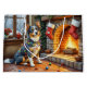 Blue Heeler Fireplace with Christmas Lights Große Geschenktüte