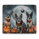 Entfesseln Sie den unheimlichen Geist mit diesem unheimlichen Halloween-Design, das eine Hundepackung unter einem dunklen, mondbeleuchteten Himmel bietet, umgeben von fliegenden Fledermäusen und glühenden Kürbissen. Ideal für diejenigen, die mit ihren wütenden Freunden eine Touch voller Furcht Liebe haben!