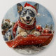 Blue Heeler Hund in Sledge Lass es Schnee Weihnach Button