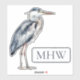Diese mit Monogramm Vinyl-Aufkleber sind mit einem blauen Heronvogel in Aquarelltönen in Blau und Grau und einer Monogramm-Box ausgestattet, die Sie mit Ihren Initialen personalisieren können. Ideal für Geschenktaschen und Gastgeschenke.
