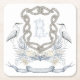 Blue Heron Rop Monogram Crest customizable paper coaster. With a place to customize a name or date on the ribbon below the crest.