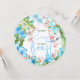 Blue hibiscus flowers, green banana leaves and brown fern wreath is beautiful on this bible verse table sign. Cute "Love is Patient" sign is cute on food tables or as a welcome sign. Perfect for tropical blue, brown, and green wedding themes.