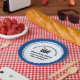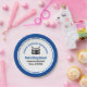 Diese moderne blaue High School Marching Band Graduation Party Papier Platte zeigt den Student und Band-Namen unter den Schlagzeug. Individuell für Symphonic-, Windensemble- oder Konzertkapelle-Mitglieder oder deren Regisseur für großartige Dekoration.