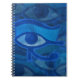 Spiral Foto Notebook mit dem Auge des Horus strukturiert blau abstrakte Design. Das Horusauge ist in blauen Tönen auf verblassten Horusaugen im Hintergrund zu sehen.