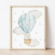 Fügen Sie mit diesen wunderschönen Kunstdrucken die Touchs in das Kinderzimmer oder Kinderzimmer Ihres Babys ein! Das Design ist mit blauem Heißluftballon, Elefanten, Mond, Wolken und Sternen ausgestattet.