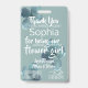 Personalisieren Sie das Blumenmädchen "Petal Patrol" Agent Abzeichen färbt weiche Blues, Creme und grüne Farbtöne mit Foto in einem mandala Spitzen Look Rahmen Design. Personalisieren Sie Dankeschön notieren auf der Rückseite. Ausgerüstet mit einer rieszierenden Spiegelbrille. Erhältlich in verschiedenen Farben.