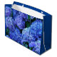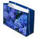 Genießen Sie Ihr Geschenk mit dieser großen Geschenktasche, die ein Foto-Image von wunderschönen, blauen Hydrangeas, auch Hortensia genannt, bietet. Die Taschen-Trimmfarbe ist blau. Ein schönes, blumengeschmücktes Design! Wählen Sie Ihren Geschenksackstil aus.