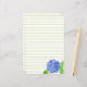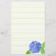 Ein grünes Schreibpapier mit einer Hydrangea-Blume in einer Farbe, die in verschiedenen Blautönen auf dem Blatt der Blume gehalten ist, und ein mit Aquarell bemaltes, Single-Avocado-grünes Blatt. Sie können die Linien entfernen, wenn Sie lieber eine solide Schreibwaren und Sie können die Farbe der Schreibwaren ändern.