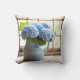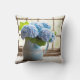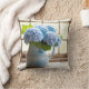 Hübsches, blaues Hydrangea-Bouquet in einem Vintagen Sockel durch ein rustikales Bauernfenster