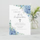 Blue hydrangeas on a white background beautiful religious holy confirmation invitation. A beautiful and elegant invitation for any season. Beautiful coordinating holy cross in the center of this beautiful design. Simply lovely. The watercolor hydrangeas are just stunning. Classy & chic.