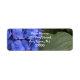 Close-up of pretty Blue Hydrangea floral with green leaves. Name and address in white typography. Original Photography by TamiraZDesigns.