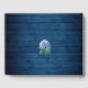 Blue Hydrangea Floral Lantern Navy Wood Wedding Gästebuch