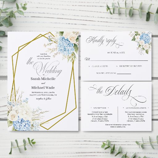 Blue Hydrangea Geometric Wedding Invitation Einladung