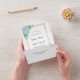 Diese Einladungen sind modern und mit blauen Hydrangea-Blume, Blätter, Blattwerk und einem goldenen Imitat gestaltet. Personalisieren Sie sie mit Ihrem eigenen Text.