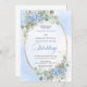 Blue Hydrangea Greenery Gold Oval Wedding Invite Einladung